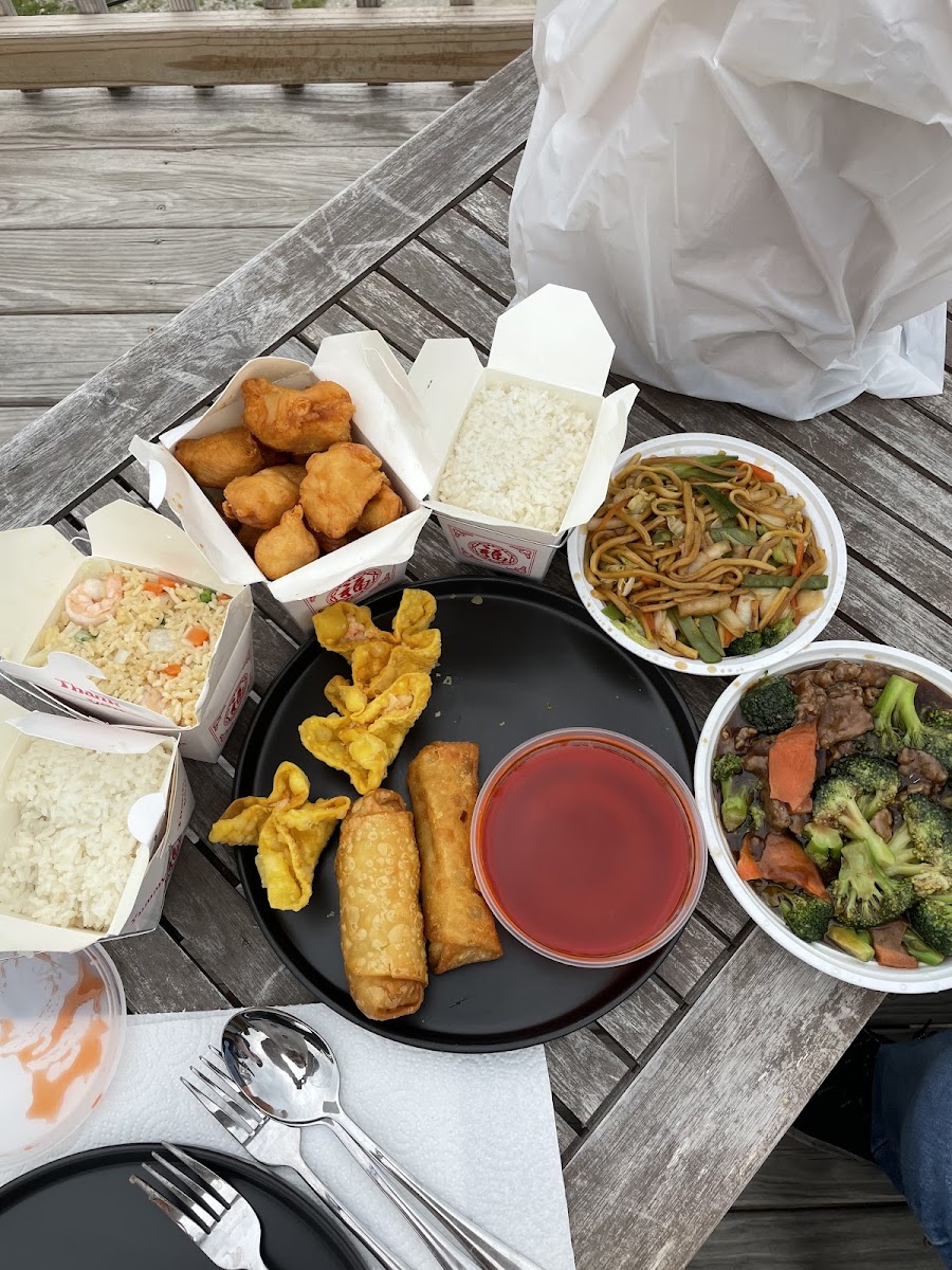 First time here, just passing through the city. I got the sweet sour chicken and beef and broccoli. Chicken is amazing! I wish I had gone with cashew chicken or something else over the beef, beef was low quality and broccoli overcooked. The food overall was good and really good prices. Skip the crab ragoons. I’d def recommend, everything was yummy and the staff is so friendly. Good sized portions too! Fried rice was fine, lo mien good. The chicken on a stick is popular but I didn’t try it personally. If you are craving rice and Chinese def come here