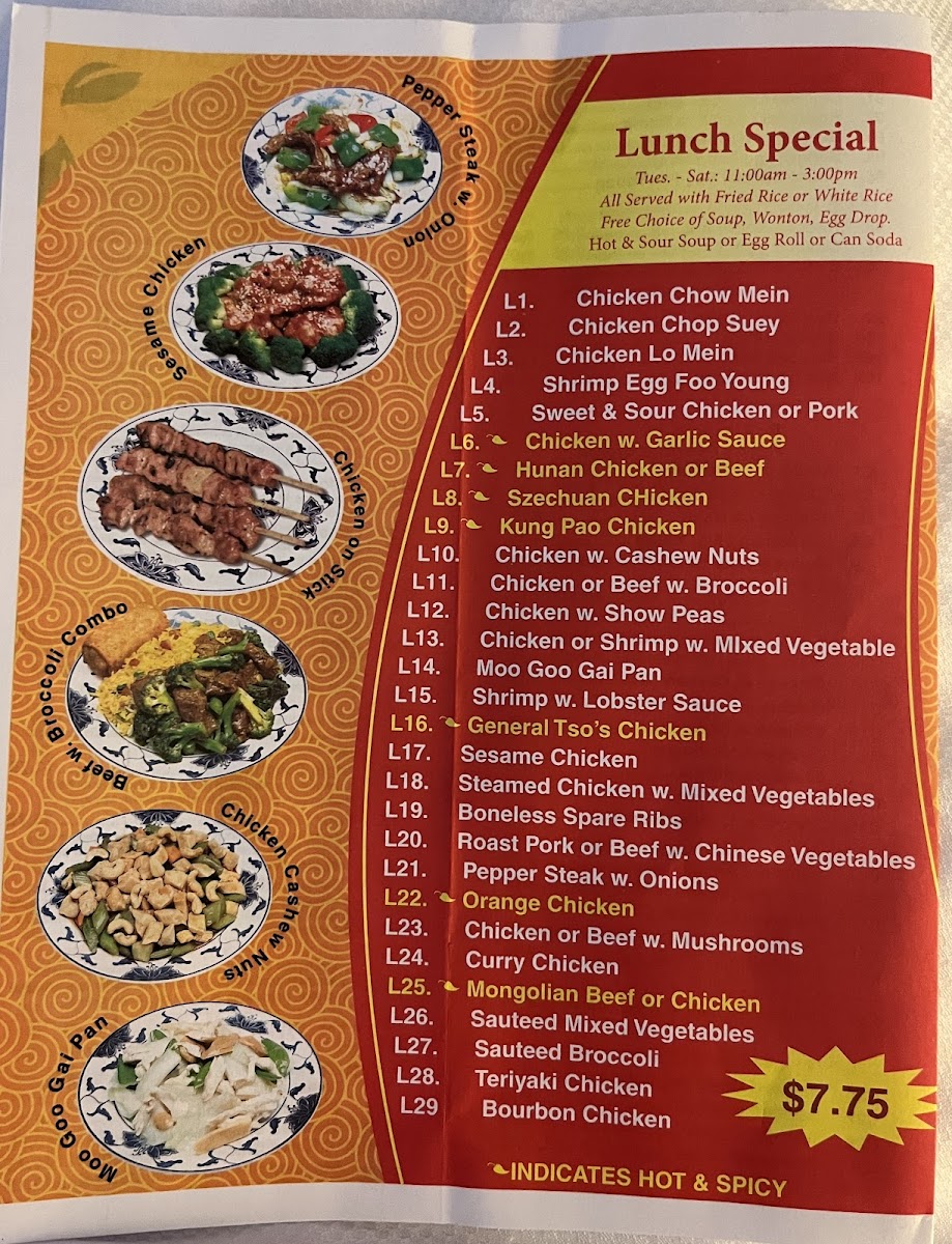 You’ll find classics like General Tso's Chicken and Kung Pao Chicken, both carrying that balanced hint of spice, alongside milder options such as Steamed Chicken with Mixed Vegetables or Teriyaki Chicken. Combination platters provide a variety of tastes and textures, perfect for those who enjoy sampling multiple dishes in one meal. Side orders like Crispy Noodles and Fried Rice complete the experience, offering simple accompaniments that complement any main.